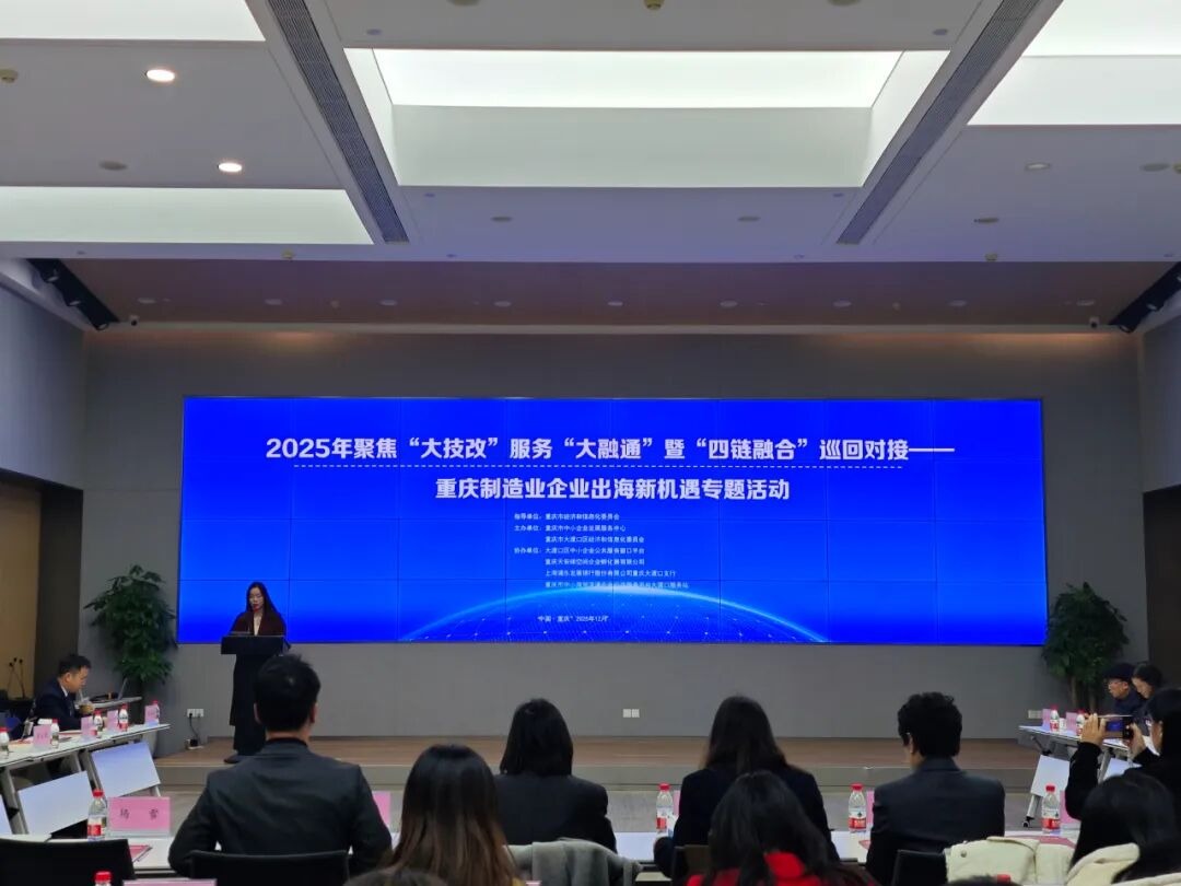 2025年12月12日,积极响应国家高水平对外开放号召,于12月12日组织会员企业参与由市经济信息委主办的“聚焦‘大技改’服务‘大融通’暨‘四链融合’巡回对接——重庆制造业企业出海新机遇”专题活动。