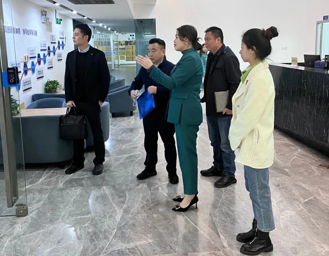 2023年3月30日,重庆市商务委服务贸易处处长叶冠兰、副处长修侃,重庆贸易(外包)协会书记钟伟,秘书长谭莉一行莅临重庆市大渡口区国际贸易商会走访调研。夏志斌秘书长带领其一行人参观产业园区,商会秘书处。贸易处领导针对数字服务贸易的企业情况进行详细调研,对企业发展遇到的问题以及痛点进行了分类,强调国家重视数字贸易发展,传达数字贸易的最新政策,为会员今后服务企业赋能。