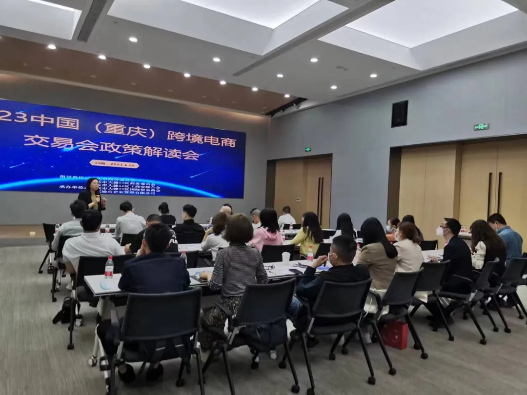 2023年4月28日,本会在大渡口区组织了50家企业参与重庆跨境电商交易会前期政策宣讲,通过详细的展会介绍和政策解答,组织了接近20家企业去现场参加“跨交会”,展位面积近200平方,企业产品涵盖有三轮车、梯具、缸体、胶卷、新能源车、实验室自动化工作站、国际物流、全屋定制智能家俱、农业红外线孵化器、二手汽车出口等等,产品丰富。