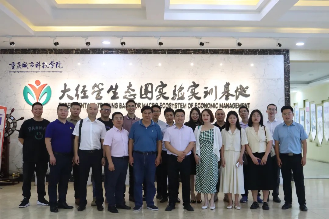 最后重庆城市科技学院经济管理学院院长张子林带领了众多企业家一起参观了大经管生态圈实训基地。大经管生态圈实验实训基地是一个大经管类跨专业综合模拟实践教学平台,构建了企业经营环境仿真运营的全景实践教学环境,其构成有制造企业群、商贸企业群、综合服务大厅、路演室、教师教学研究室与洽谈招聘室等六个板块。