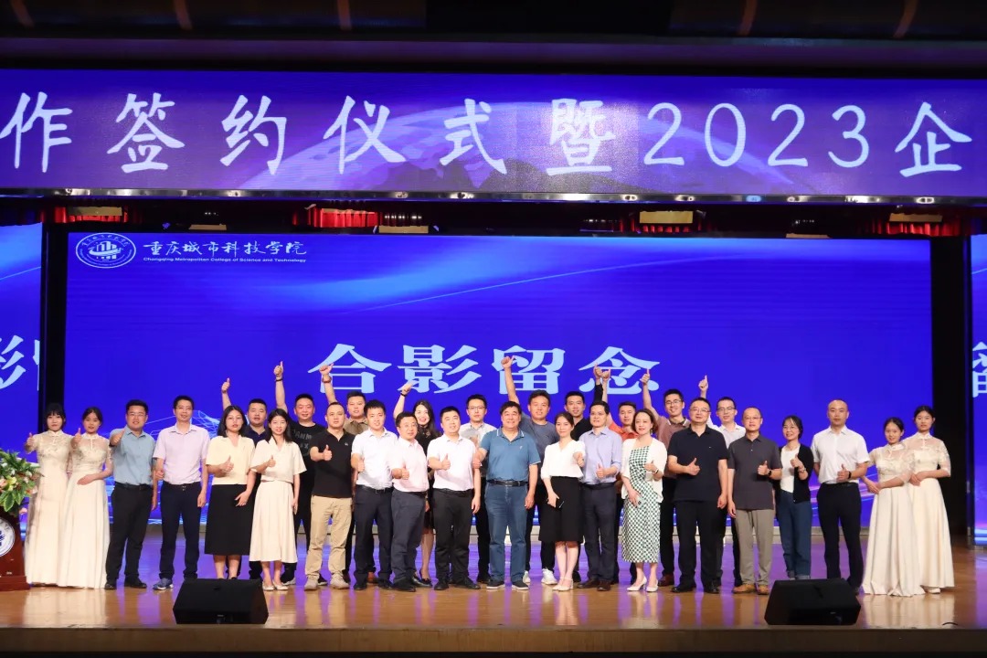活动到第二项进行了签约、授牌仪式,重庆城市科技学院副院长与各位企业家签订了合同,并且本会被学院授予“实习实践基地”。